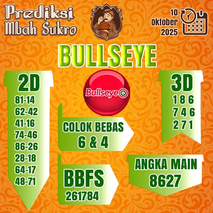 PREDIKSI MBAH SUKRO BULLSEYE JUMAT 10 OKTOBER 2025