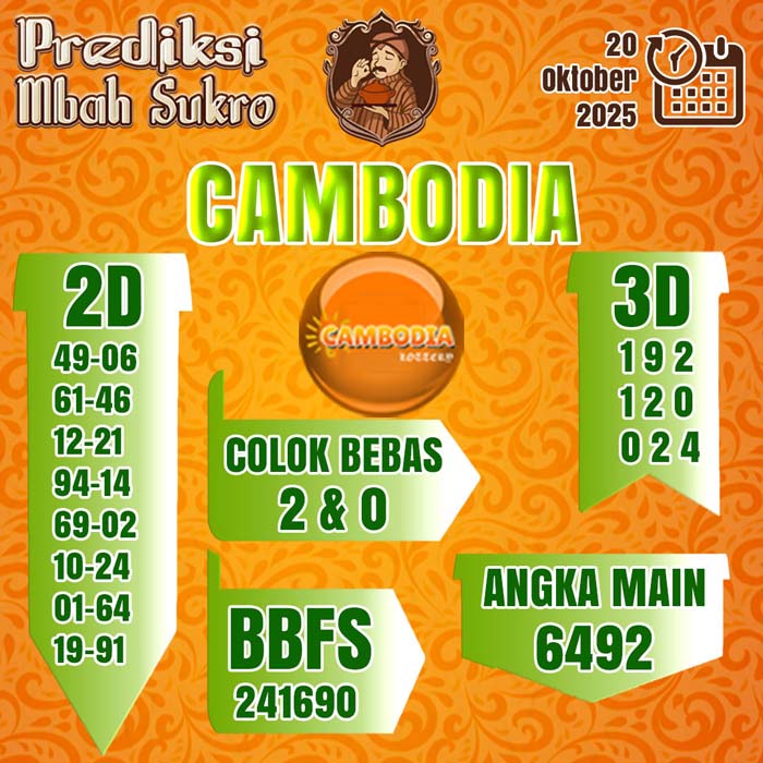 PREDIKSI MBAH SUKRO CAMBODIA SENIN 20 OKTOBER 2025