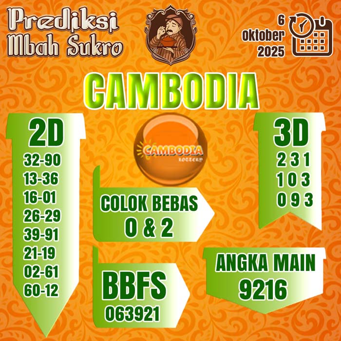 PREDIKSI MBAH SUKRO CAMBODIA SENIN 6 OKTOBER 2025