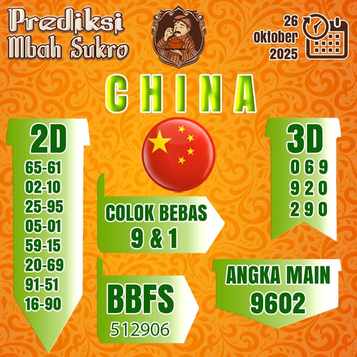PREDIKSI MBAH SUKRO CHINA MINGGU 26 OKTOBER 2025