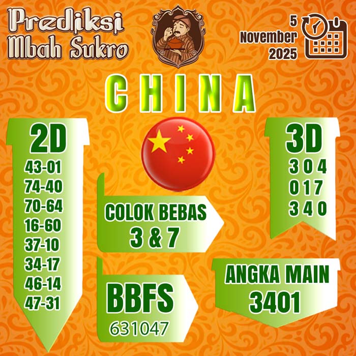 PREDIKSI MBAH SUKRO CHINA RABU 5 November 2025