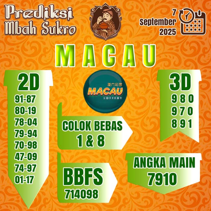 PREDIKSI MBAH SUKRO MACAU MINGGU 7 SEPTEMBER 2025