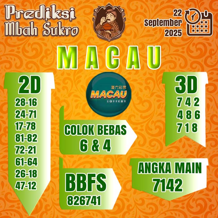 PREDIKSI MBAH SUKRO MACAU SENIN 22 SEPTEMBER 2025