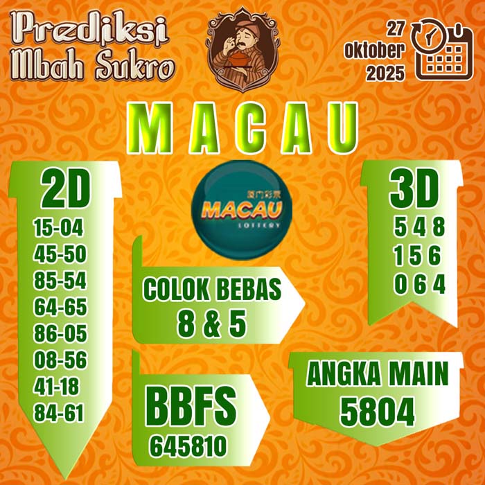 PREDIKSI MBAH SUKRO MACAU SENIN 27 OKTOBER 2025