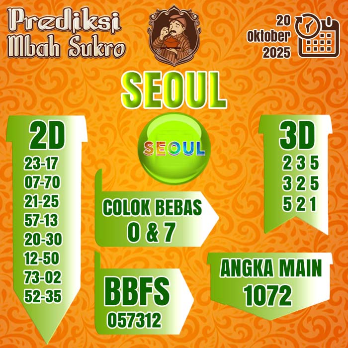 PREDIKSI MBAH SUKRO SEOUL SENIN 20 OKTOBER 2025