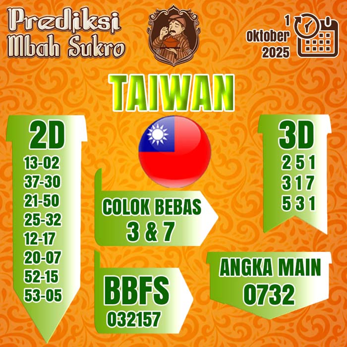 PREDIKSI MBAH SUKRO TAIWAN RABU 1 OKTOBER 2025